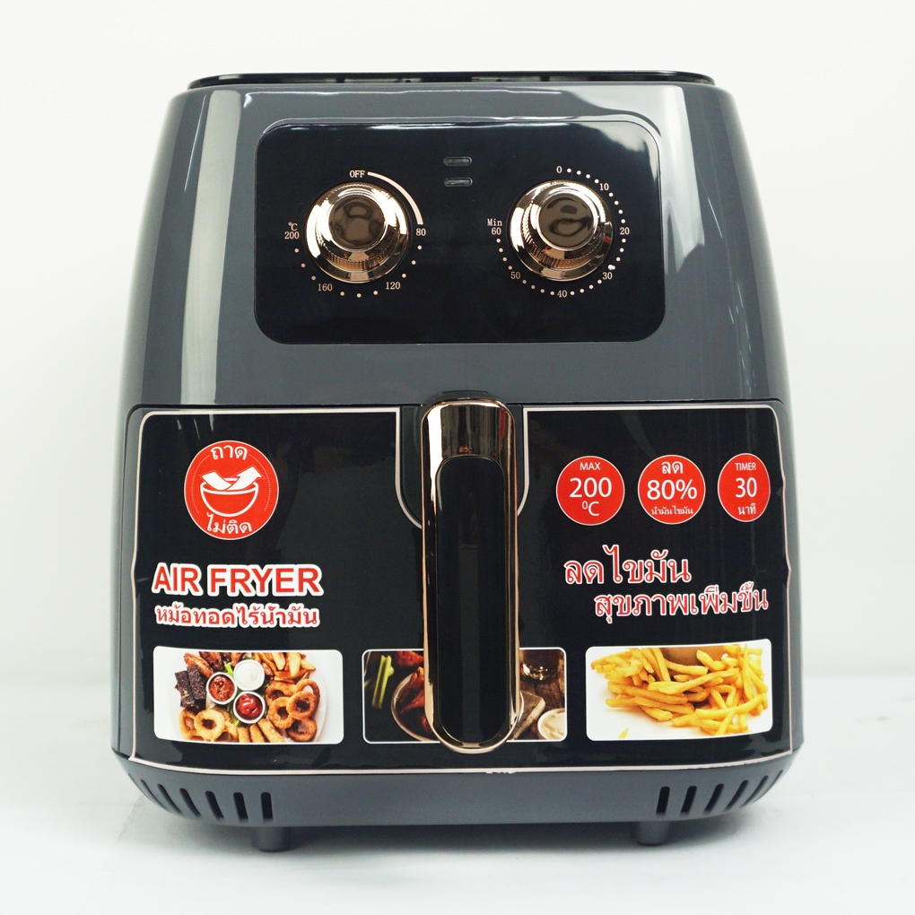 Nồi chiên không dầu Sharp được điều khiển bằng núm vặn linh hoạt như núm vặn điều khiển nhiệt độ từ 80-200 độ C, núm vặn điều chỉnh thời gian từ 0-30P